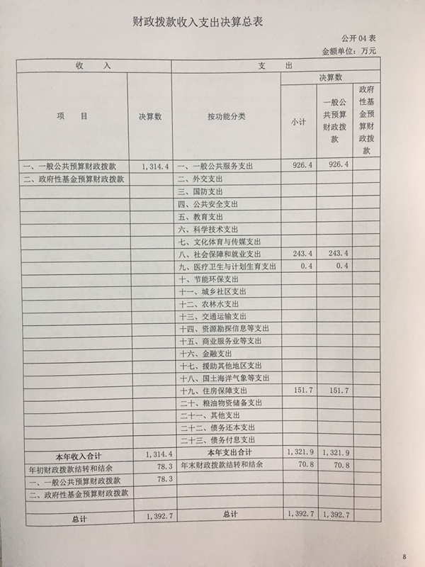 市民宗局2016年度财政拨款收、支总决算1392.7万元。与上年相比,财政拨款收、支总计各增加249.47万元,增长21.82%。主要原因是人员经费与项目经费都有所增加。
