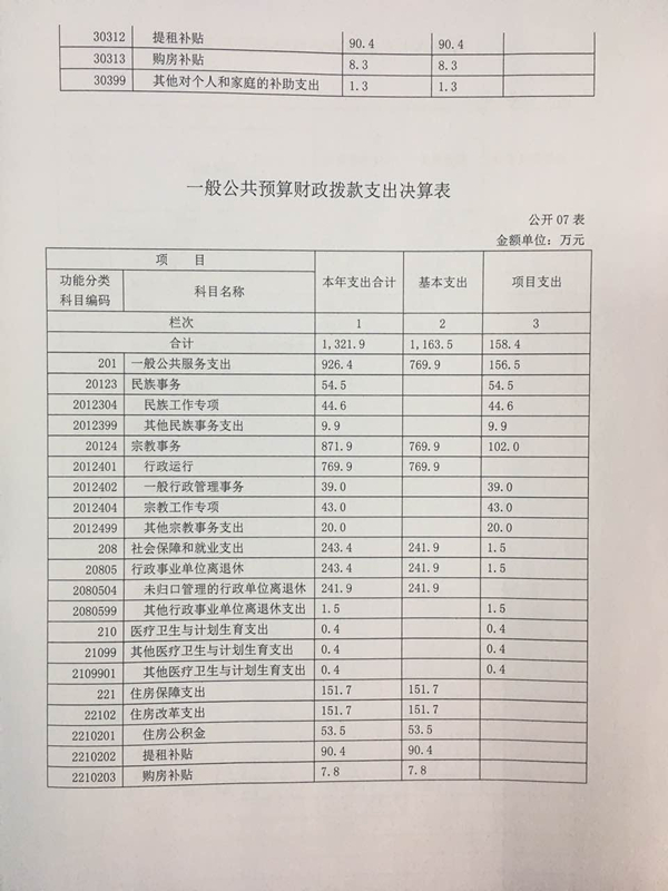 1.一般公共服务(类)支出926.4万元,主要用于局机关工作人员工资、机关日常运转、开展民族宗教专项工作等支出。与上年相比增加199.54万元,增长27.45%。主要原因是人员工资调整,日常公用经费增加等。
