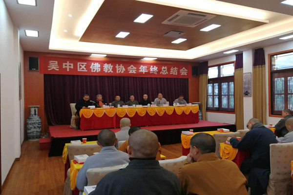 1月18日,苏州市吴中区佛教协会召开2017年度工作总结会议,吴中区佛教协会会长心培法师等寺院负责人、代表参加了会议。吴中区民宗局局长顾志男、副局长岳峰、政策法规科科长王金泊等应邀出席会议。