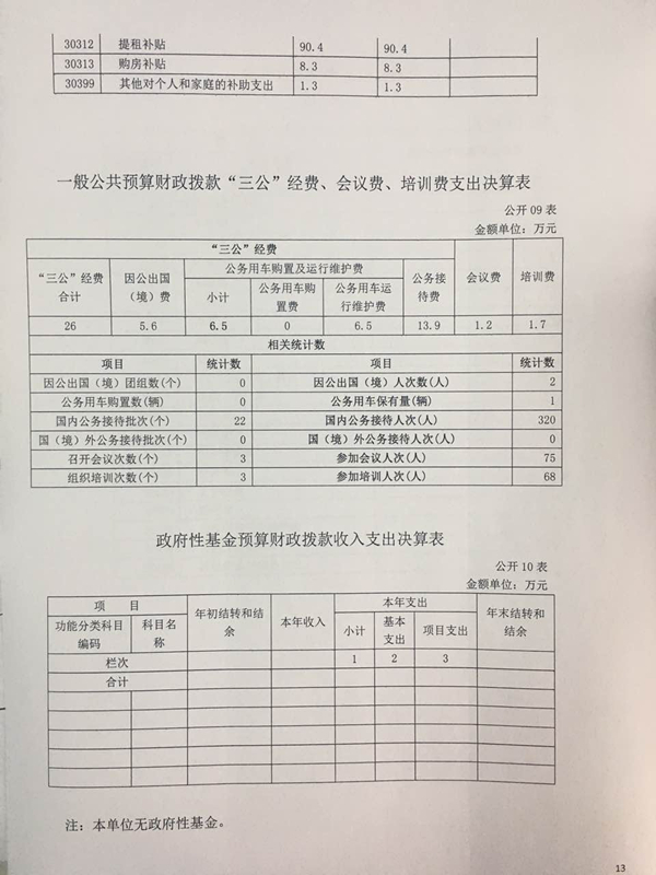 十七、“三公”经费:指市级部门用一般公共预算财政拨款安排的因公出国(境)费、公务用车购置及运行费和公务接待费。其中,因公出国(境)费指单位公务出国(境)的住宿费、旅费、伙食补 助费、杂费、培训费等支出;公务用车购置及运行费指单位公务用车购置费及租用费、燃料费、维修费、过路过桥费、保险费、安全奖励费用等支出;公务接待费指单位按规定开支的各类公务接待(含外宾接待)支出。