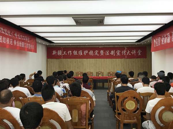 8月4日,苏州市民宗局、公安局和新疆驻江苏省工作组,在姑苏区白玉楼联合举办了新疆籍在苏经商务工人员法制宣传教育活动。通过唱国歌、“发声亮剑”宣誓签字、“四争四爱” 倡议、“一封家书”和法制宣传教育等内容,强化新疆籍在苏经商务工人员“爱祖国、爱新疆、爱苏州”的情感和法制意识,坚决维护民族团结,抵制宗教极端思想,依靠勤劳和智慧致富,树立新疆人的良好形象,为维护苏州社会和谐稳定增光添彩。