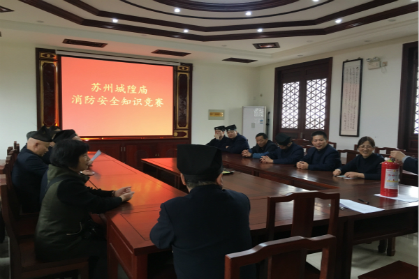 为增强苏州城隍庙全体道职员工消防安全意识,切实加强消防安全管理, 提高苏州城隍庙全体道职员工的安全意识和抗灾救灾能力,11月7日,苏州城隍庙在讲经堂举办全体道职员工消防安全知识竞赛。