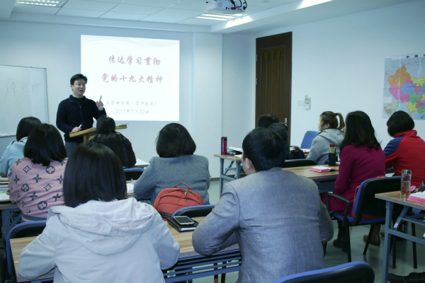 苏州校区根据省委宣讲团报告会的统一要求,向全体师生传达报告会的学习内容和会议精神。学习活动由苏州校区教师汪恩乐主讲。